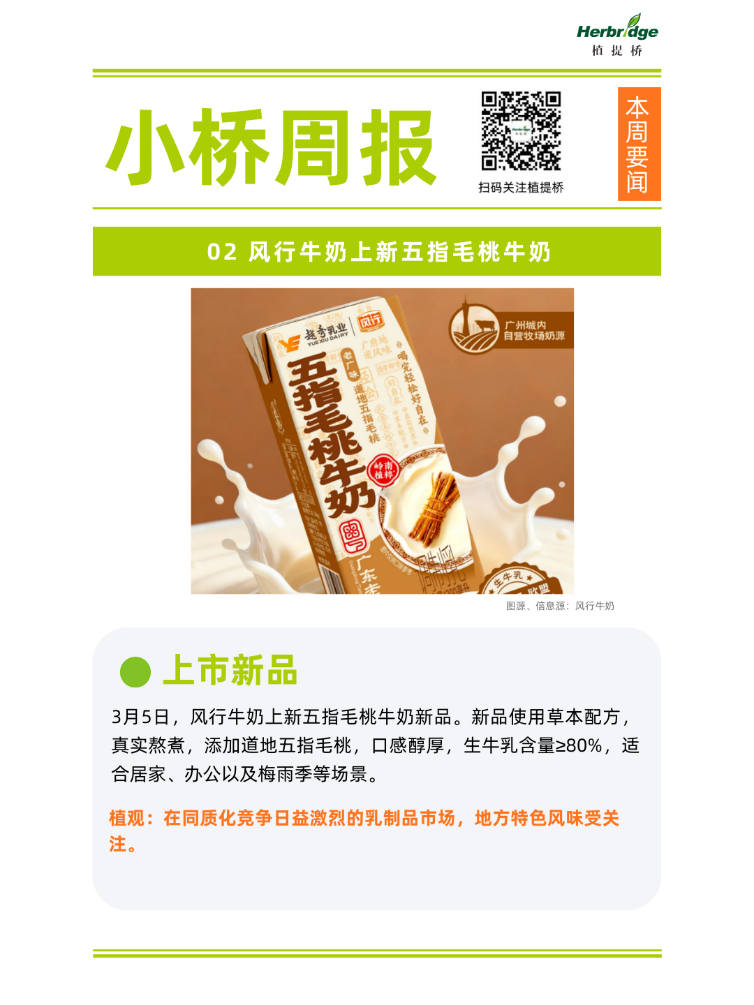2、风行牛奶推出五指毛桃牛奶