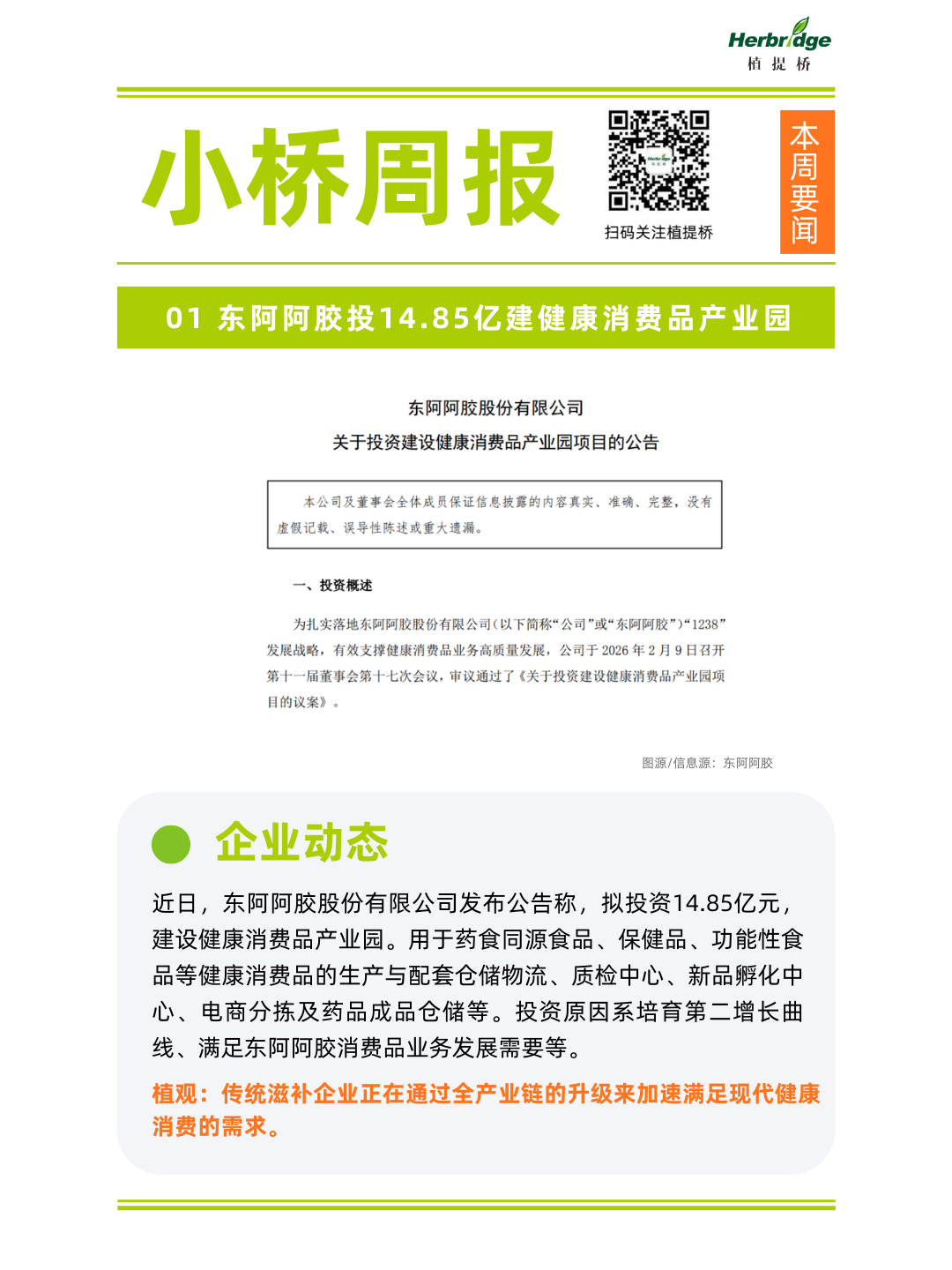 东阿阿胶新建产业园、全家上新;融资动态