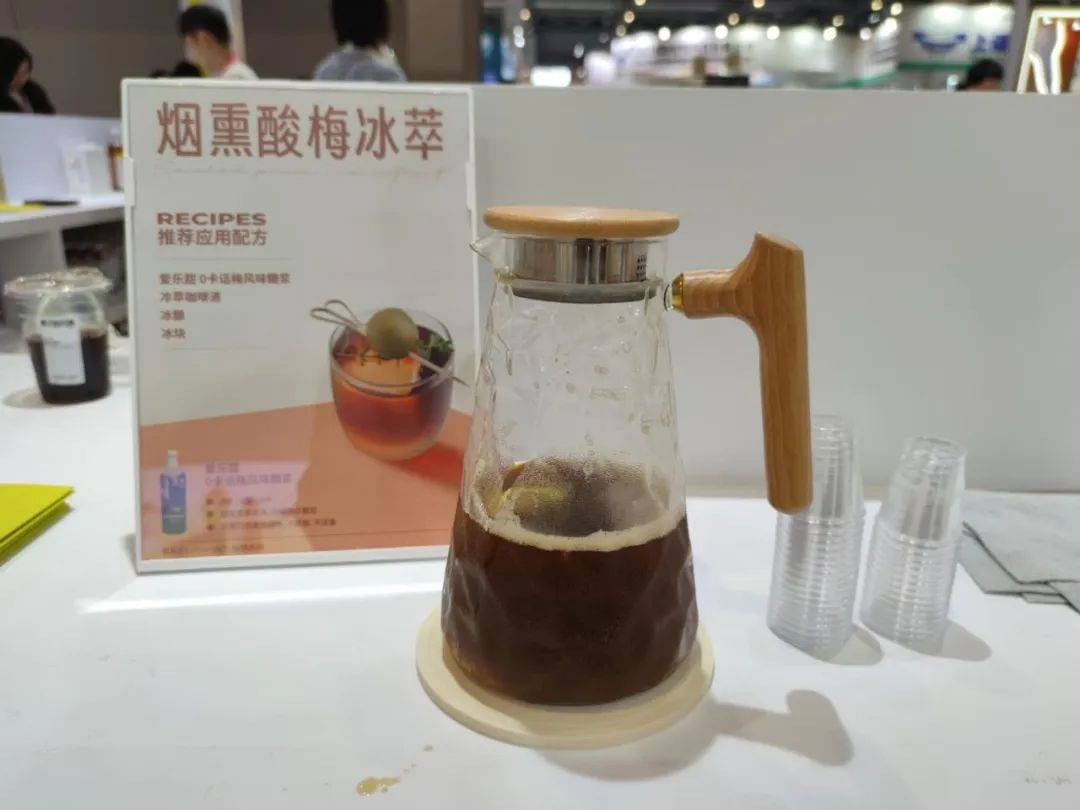爱乐甜在Hotelex上海展上展出的“烟熏酸梅冰萃”,就是通过话梅风味糖浆与冷萃咖啡液结合,而产生了“烟熏”感。