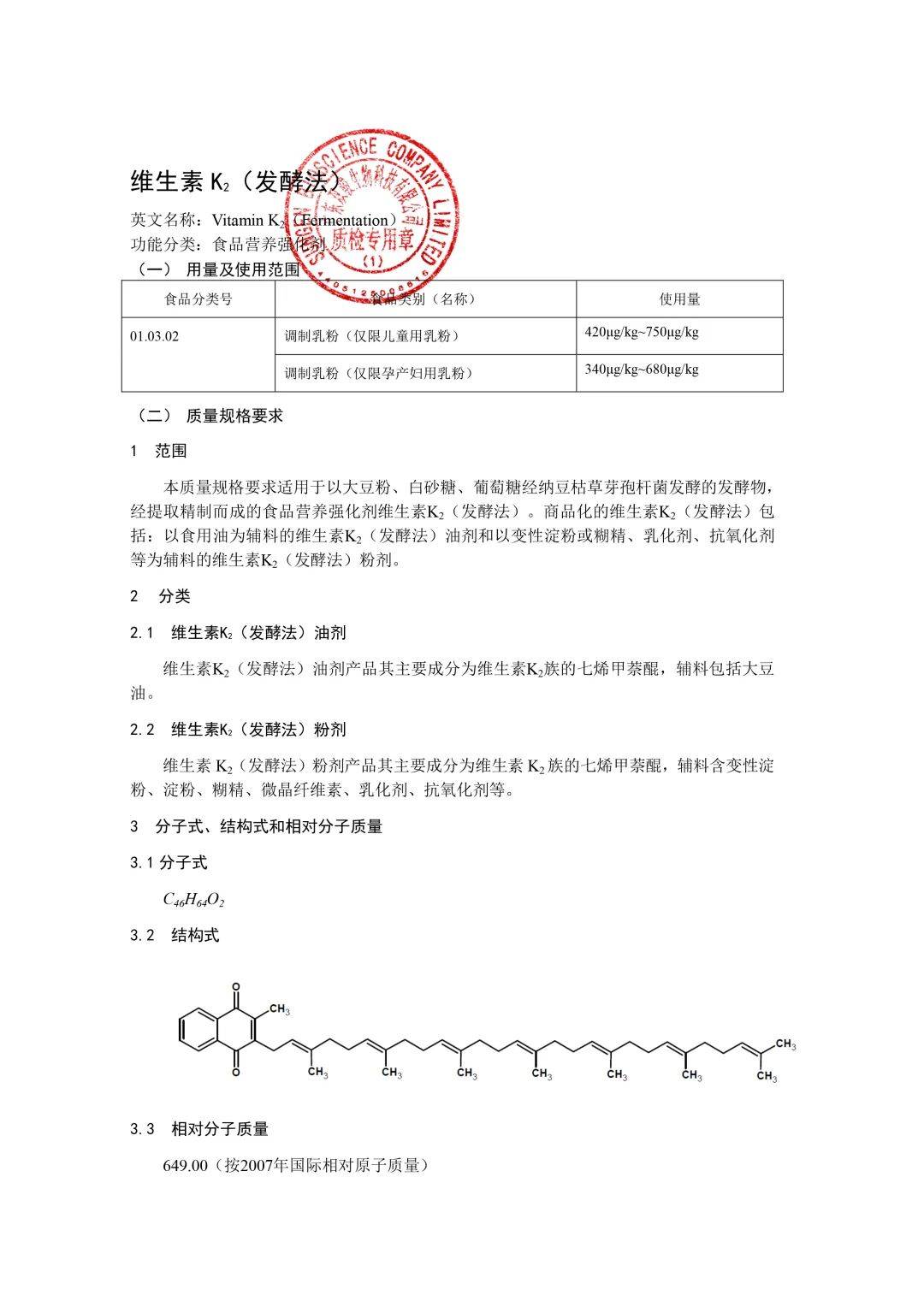 维生素K2国标GB14880