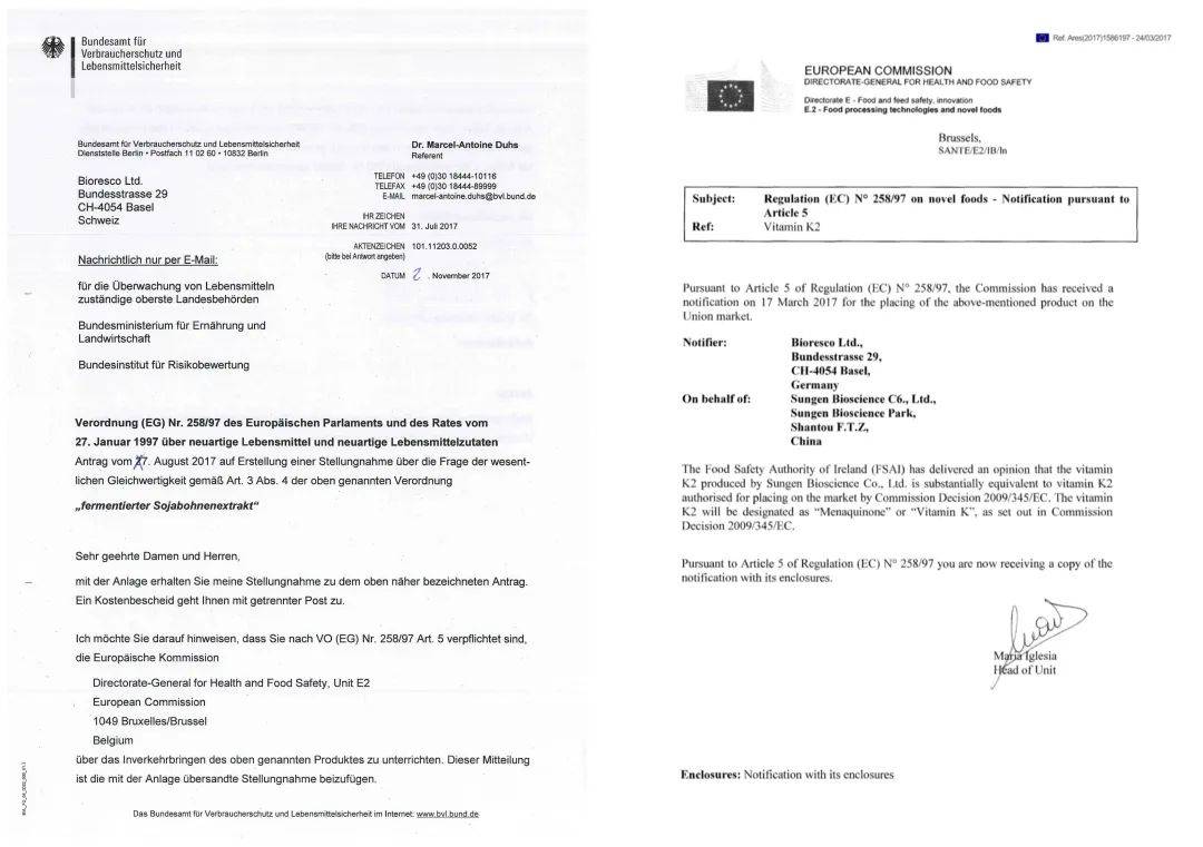 右:维生素K2欧盟新资源食品认证