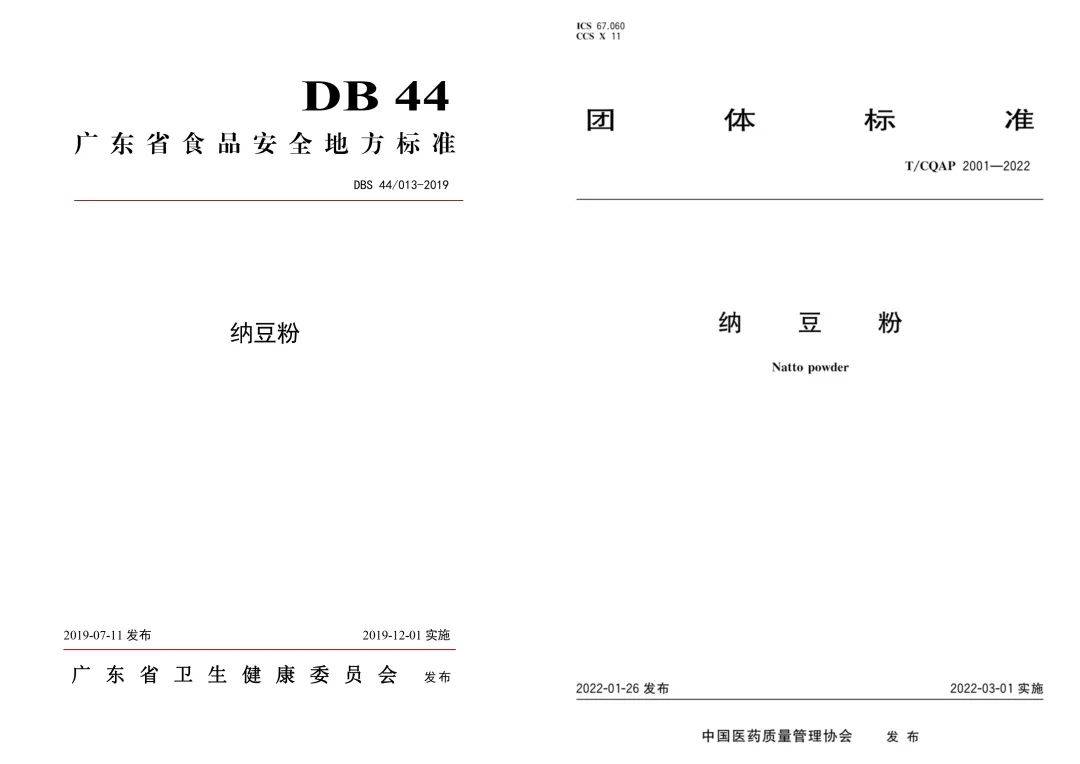 左:纳豆粉地方标准(DBS 44/013-2019)