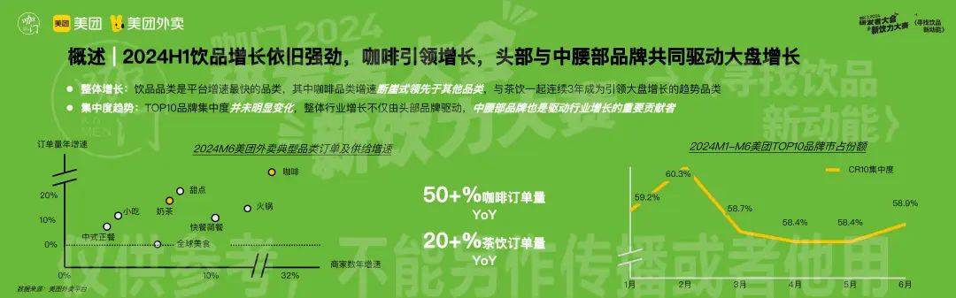 还有一个好消息是,饮品的增长不仅是头部品牌带动,中腰部的新势力品牌也在拉动增长。