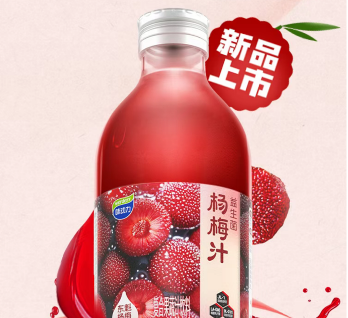 5月7日,味动力宣布上新益生菌杨梅汁。新品使用来自云南石屏的东魁杨梅,一瓶含63颗东魁杨梅,果汁总含量大于等于60%,配方纯净,只有水、果汁和三种益生菌(李糖乳酪杆菌JL-1、动物双歧杆菌乳亚种BL-G101、嗜酸乳杆菌LA-G80)。