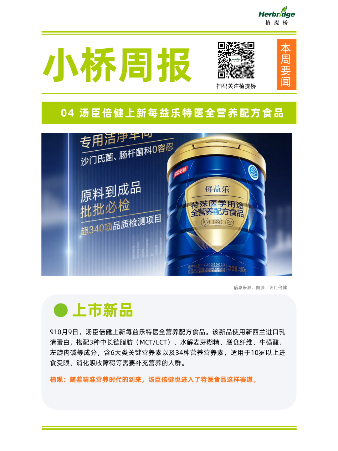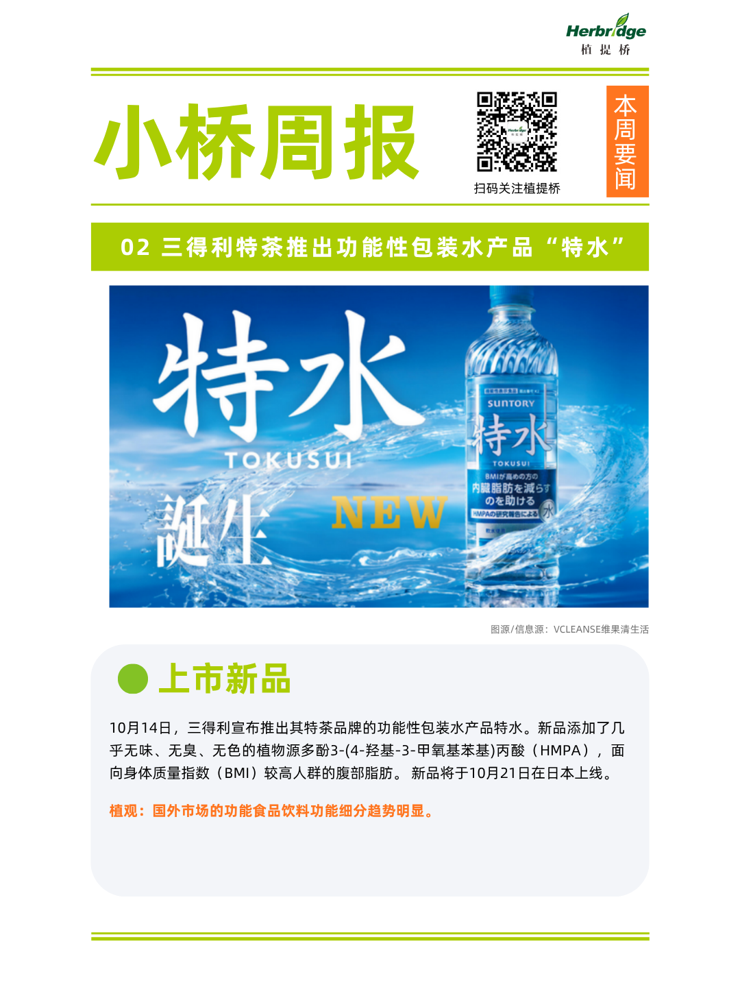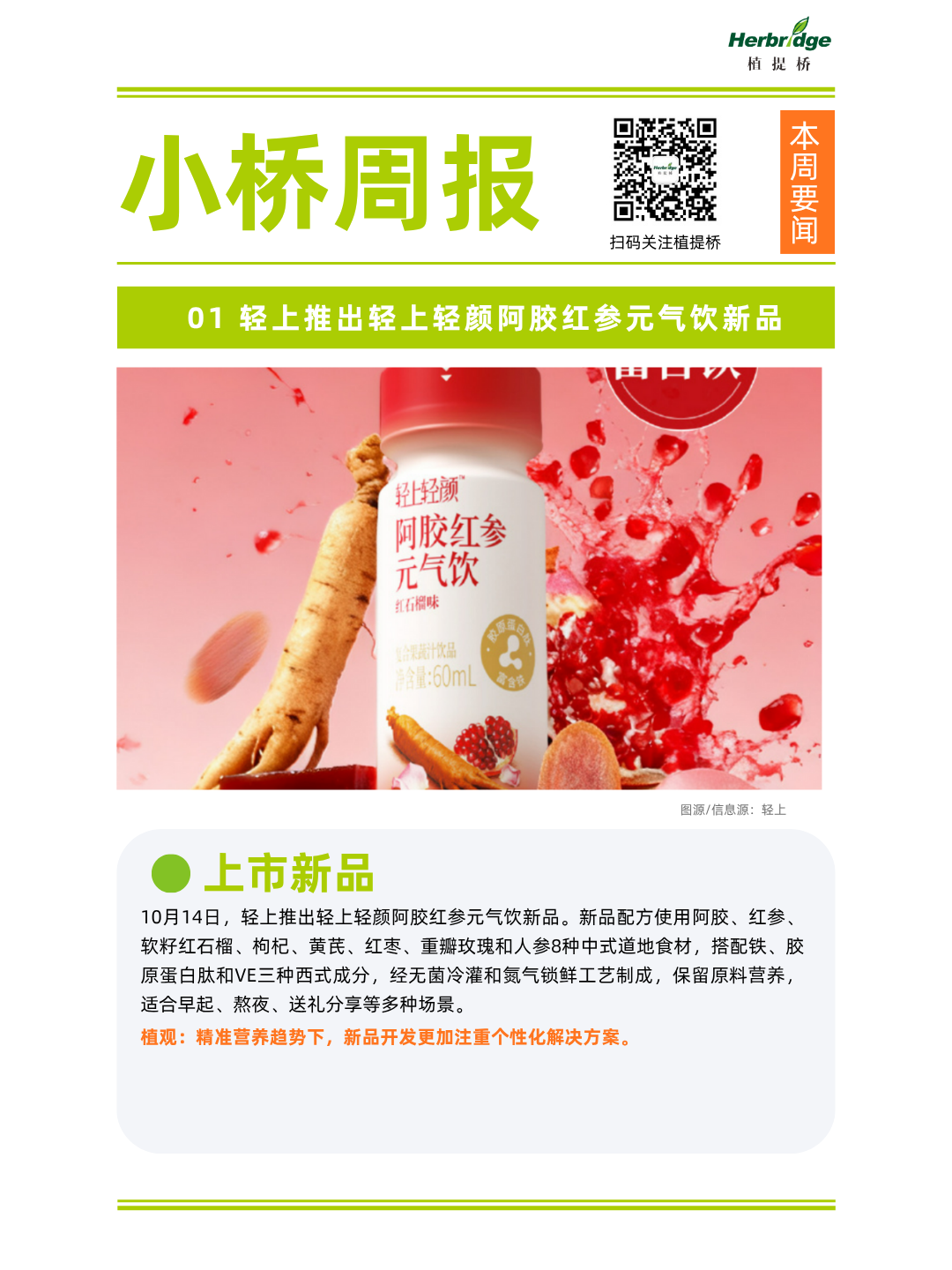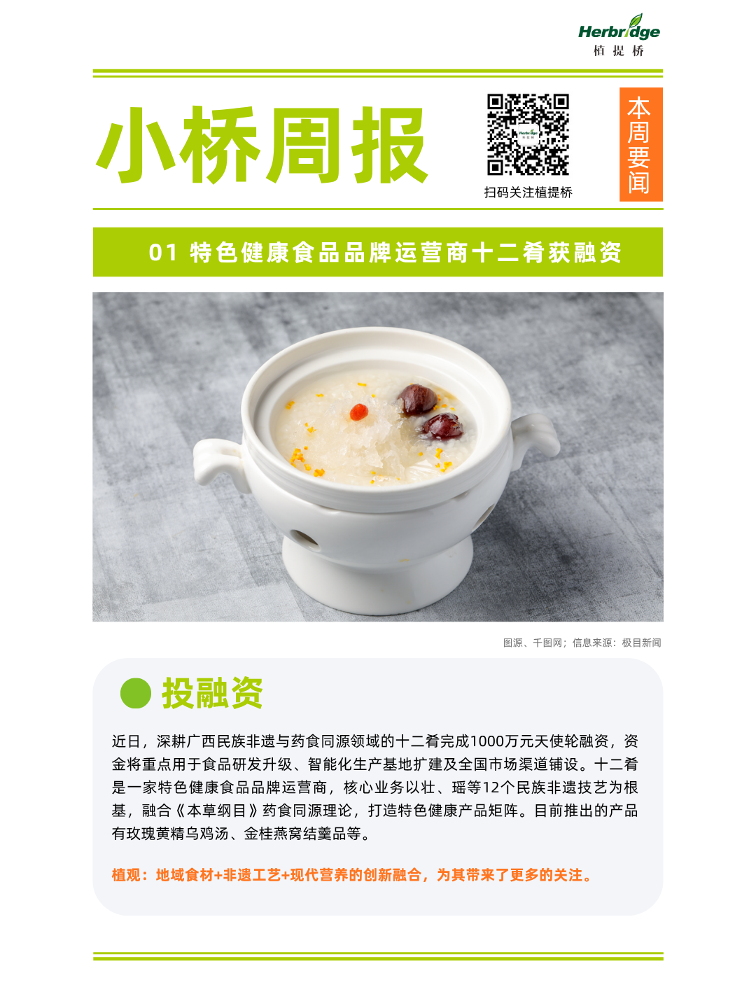 一周要闻|多款三新食品被受理;江中食疗、汤臣倍健、轻上、三得利推新;两家企业获融资