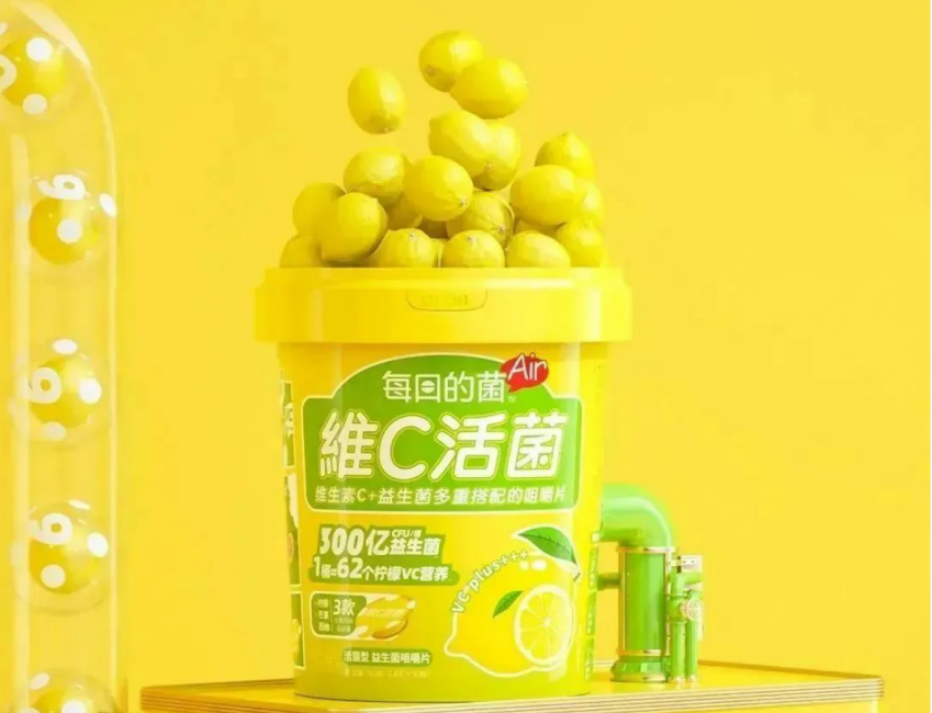 近日,每日的菌推出维C活菌小黄桶,该款产品是由维生素C搭配益生菌制成的咀嚼片。