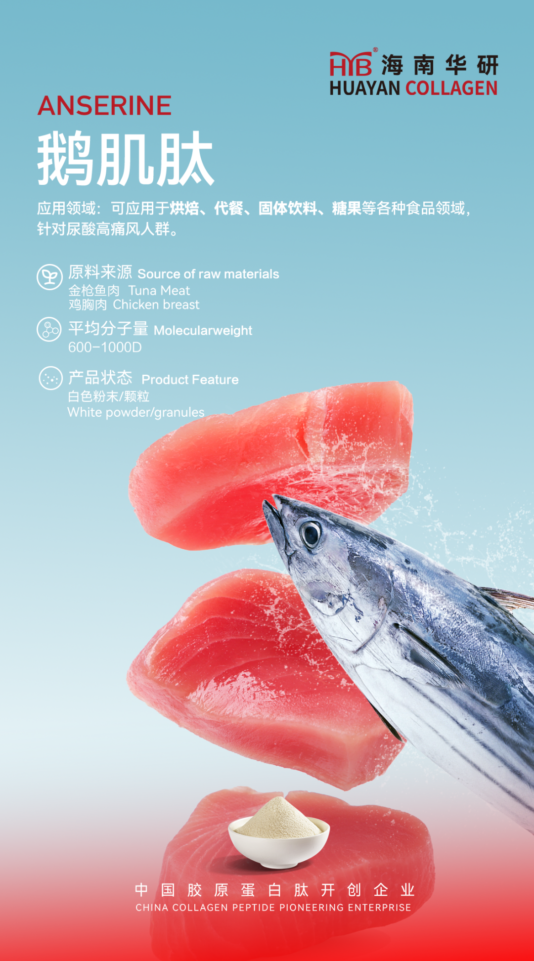 鹅肌肽是以鸡胸肉为原料,经特定工艺提取、定向酶切、浓缩、干燥得到的平均分子质量<1000D,同时含有5%以上组氨酸二肽类产品。目前在特殊医学用途食品及保健食品领域应用较为广泛,普通食品领域近年有较好发展前景。