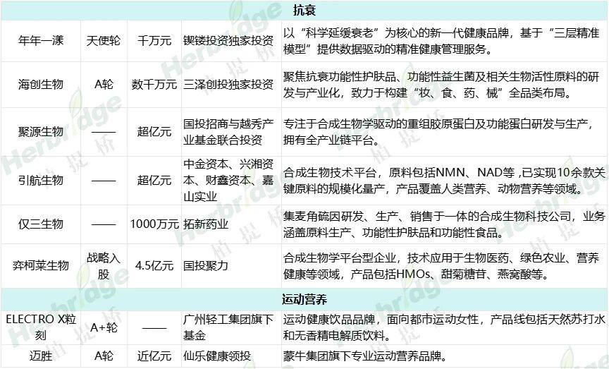 资本聚焦抗衰、运动营养等高增长赛道,偏好可规模化、可盈利、具技术壁垒与真实需求的企业,长期价值持续释放。