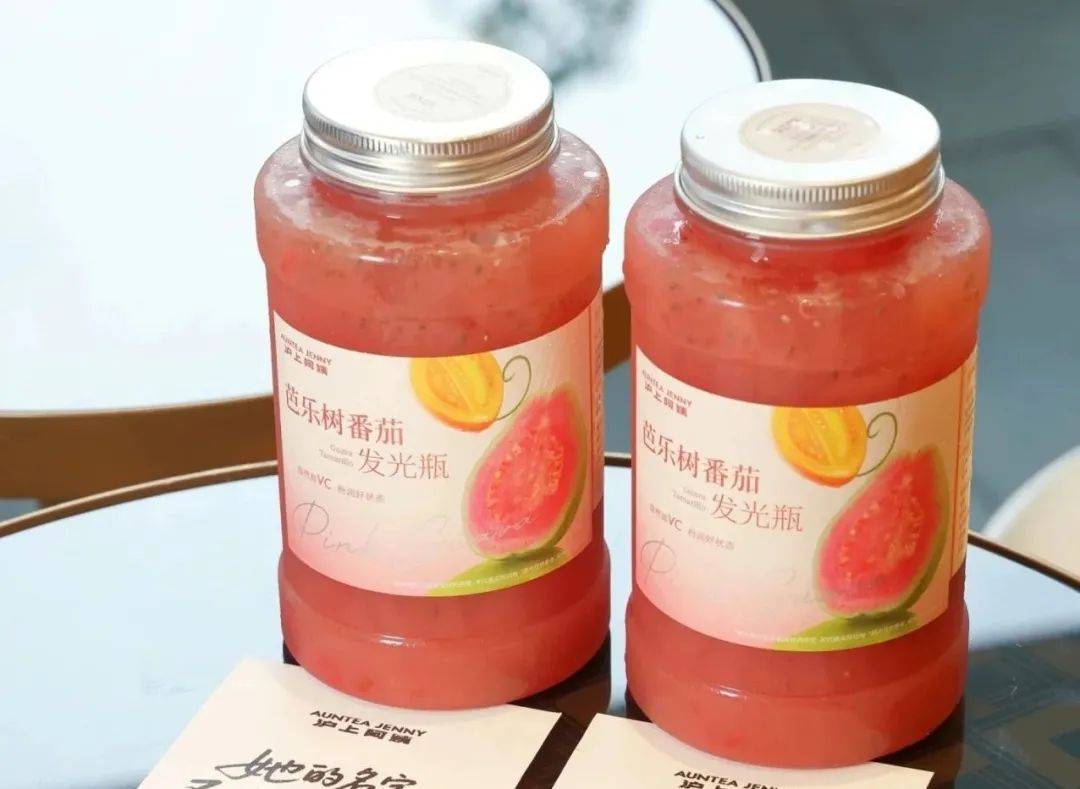 例如,芭乐树番茄发光瓶兼具高颜值与高膳食纤维,成为美颜的补充产品;苦瓜果蔬茶主打“去火”养生,羽衣甘蓝纤体瓶则是瘦身的神助攻。