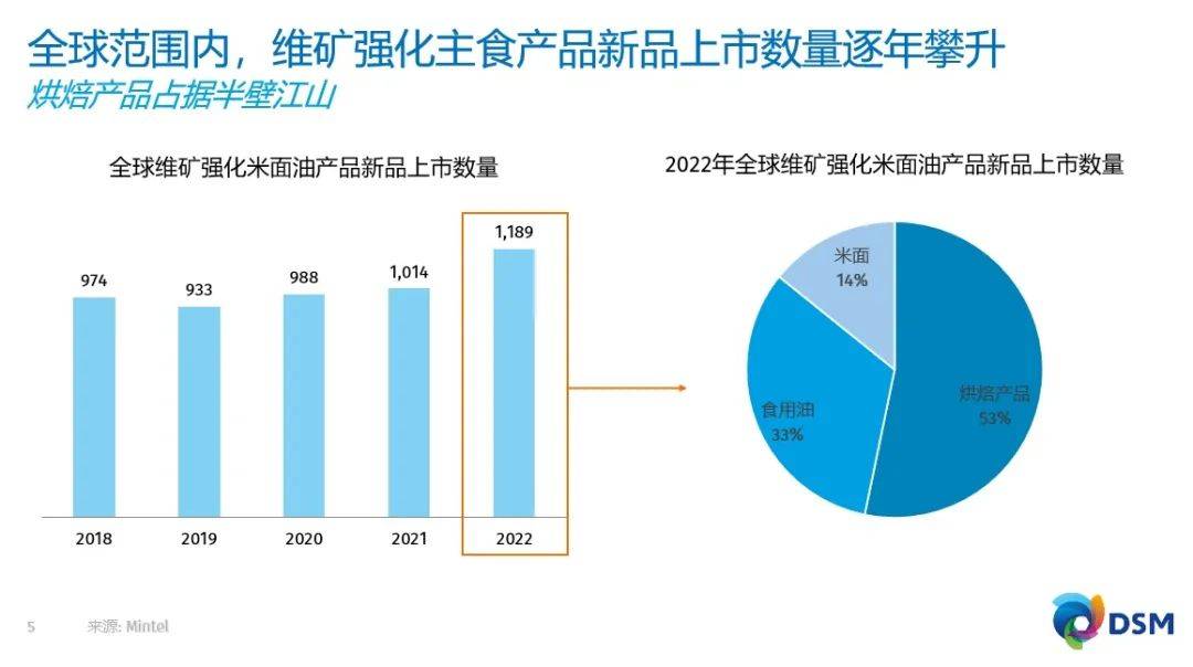 在全球,食物营养强化被认为是一种解决广泛性微量营养素缺乏问题的最经济、有效和可持续的方法。Mintel数据表明:全球强化维生素和矿物质的米面油新品数量稳步增长,去年总数接近1200款。这些新品主要分布在烘焙食品、食用油和米面类产品中。