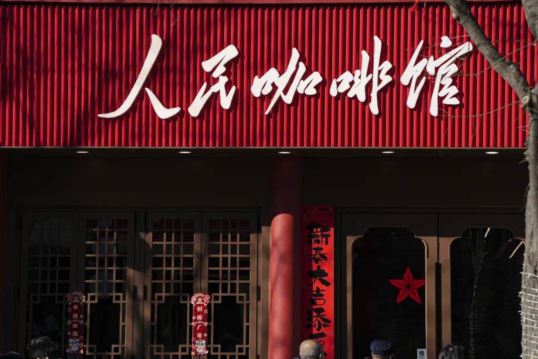 “人民咖啡馆”在北京有2家门店,其极具“主旋律”的装修风格,自带“编制感”的门店氛围,被广大网友称为“更适合中国宝宝体质的咖啡馆”。