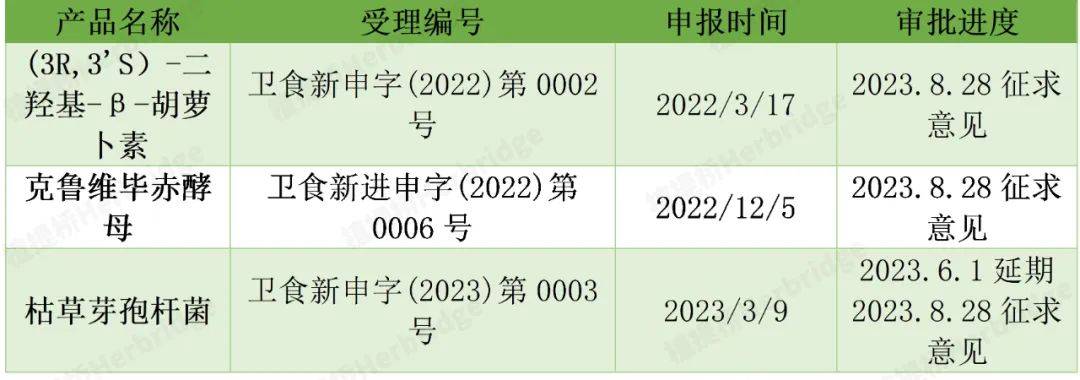 8月28日,国家卫健委法规动态,受理2款新食品原料,同时有3款新食品原料开始征求意见。