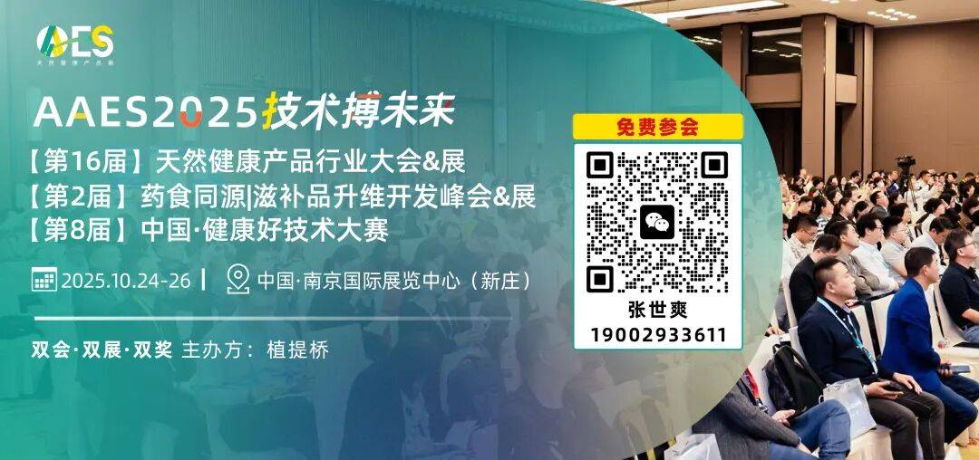 2025年10月24-26日由植提桥主办的第16届【AAES天然健康产品展& AAES天然健康产品行业大会】及第2届【药食同源|滋补品升维开发峰会】将在南京国际展览中心(新庄)举办,大会现场将有260+专业展商携带新原料、新产品、新技术、新解读方案等亮相,预计将吸引7000+专业观众参与,欢迎报名参展与合作。