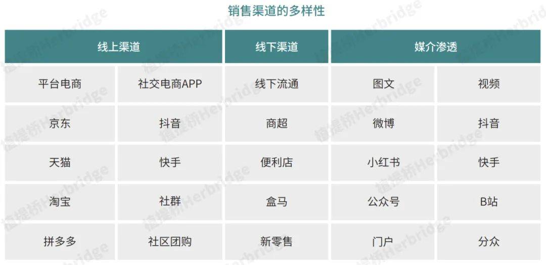 电商热潮带动功能食品快速扩容。成立时间不长的新锐品牌的渠道很明确,从线上渠道开始,发展好的会慢慢向线下高端的商超拓展市场,最后触达传统的便利店、KA商超,最终实现全渠道的运营。
