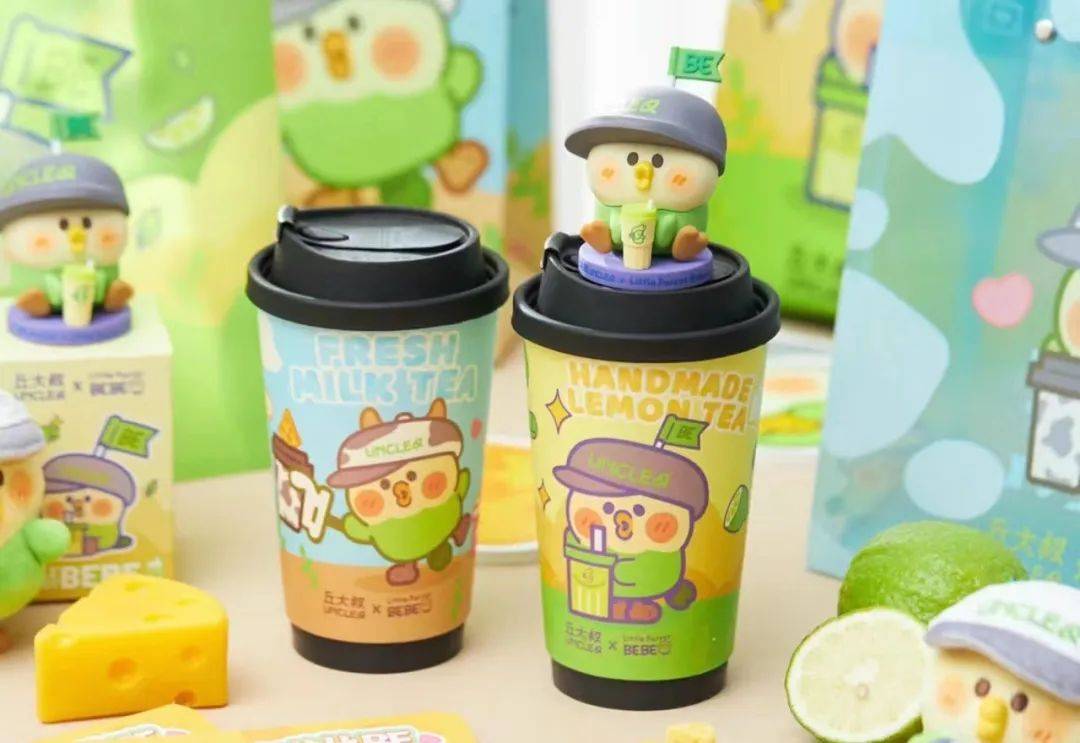 在粉丝力推下,11月22日,丘大叔上架了生打酪系列新品:生打酪奶茶和柠檬生打酪奶茶。伴随着产品上架,同样是在粉丝推动下,丘大叔和知名表情包IP小鹦鹉BEBE做了一波联名,吸粉无数。