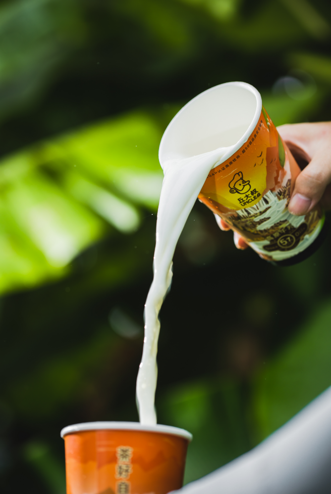 比如雨林可可香奶茶。丘大叔结合健康化趋势,升级使用的0奶精0植脂末0反式脂肪酸0氢化植物油的高原牛乳,每100mL含5.7g优质乳蛋白(为国际要求1.9倍),及172mg原生高钙(超国际要求43%),由塞尚乳业独家供应。
