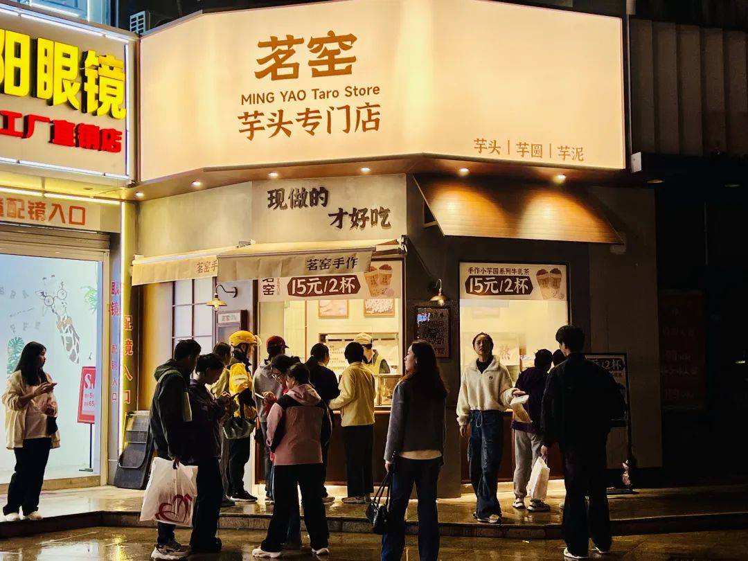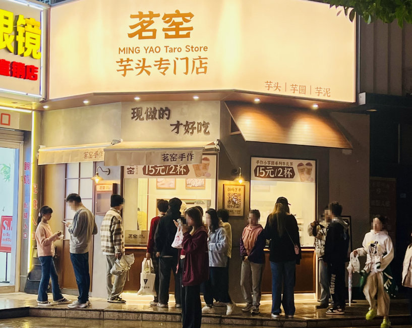 最近,南京的周周发现,学校附近开了一家名叫“茗窑”的芋头饮品专门店,生意十分火爆,天天在朋友圈刷屏。