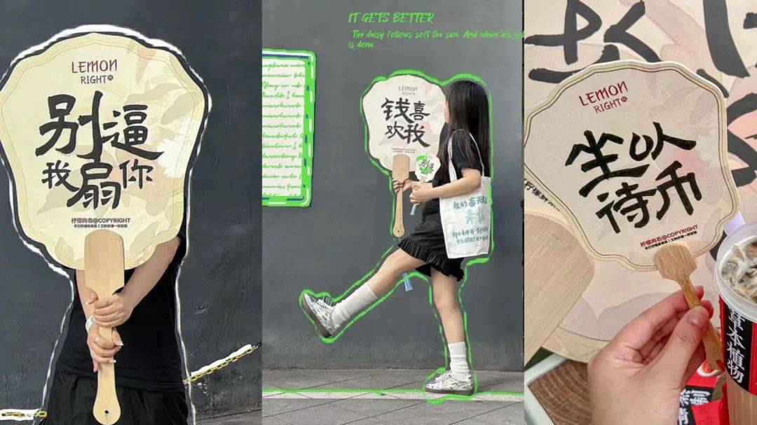 柠檬向右在社交平台出镜率最高的周边“发疯扇”,上面印着“如果人生要碰壁,我希望是人民币”“坐以待币”等文字图样,狠狠共情当代年轻人。