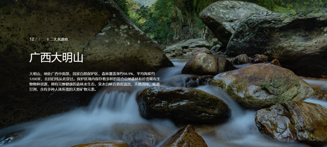 今年7月,农夫山泉第12个水源地在广西大明山落地投产,凭借区位条件将为广西及紧邻的贵州、云南、广东等地消费市场提供饮用天然水产品。为保证长期稳定的水资源供应能力,农夫山泉未停止水源地探寻,至今农夫山泉第12个水源地落地投产。