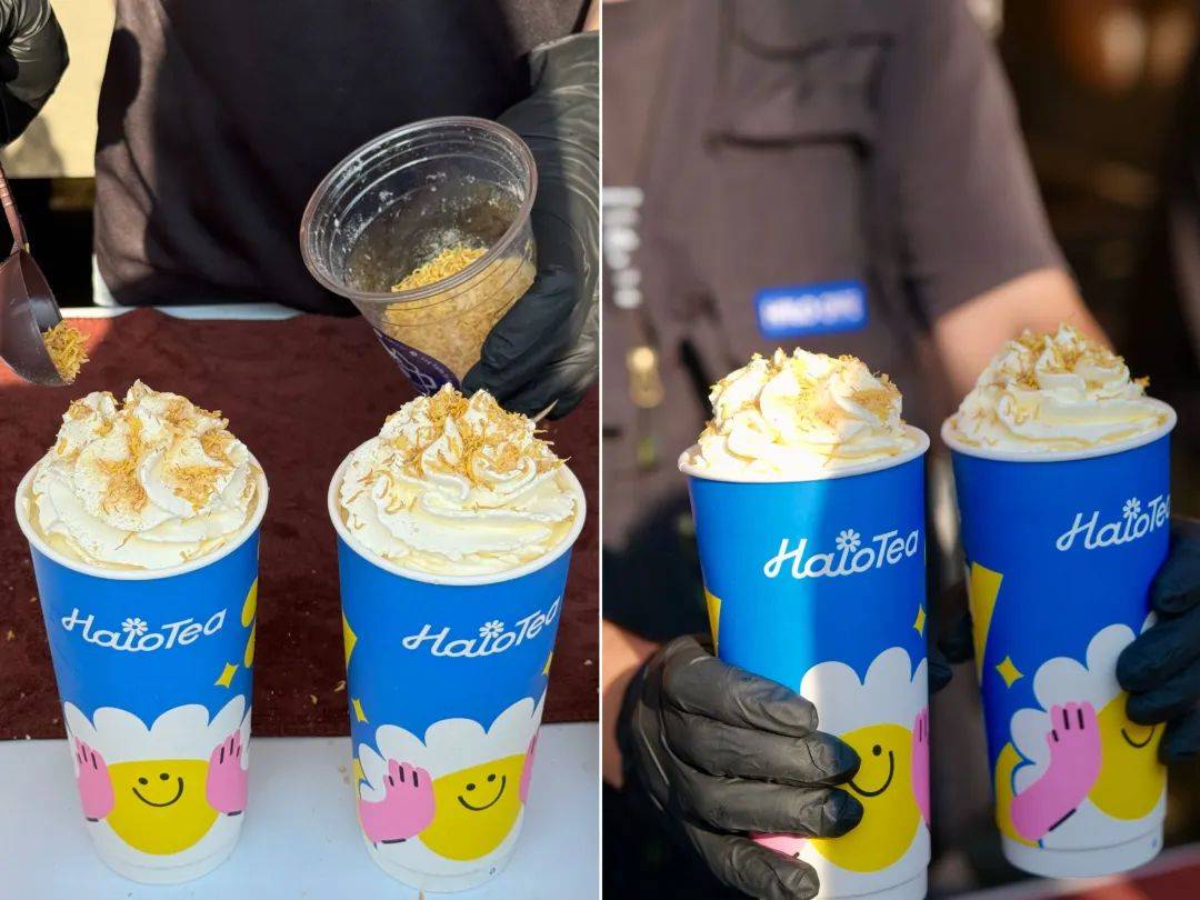 中山小榄作为“菊城”,菊花文化深入民心。HALO TEA在菊展期间开出快闪店,以金菊为主题,推出3款茶饮:金菊轻乳茶、金菊波波奶茶、金菊气泡茶。
