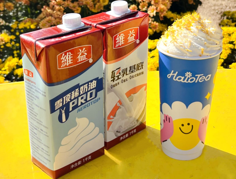 据了解,其中使用的维益雪顶稀奶油PRO原料,严选国内牧场鲜配生牛乳和国外原料,0植脂末、0反式脂肪酸、0氢化,让整杯饮品健康“到顶”。