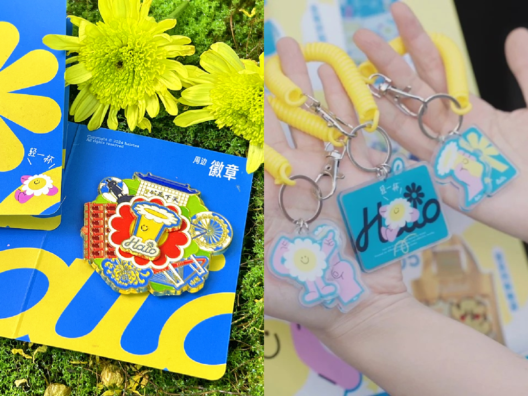 比如,本次金菊系列推出特色旋转徽章、钥匙扣、冰箱贴等,不仅做工精致,还将中山地标建筑、金菊与奶茶元素完美契合,一跃成为菊展的热门纪念品,许多外地游客为了周边购买饮品。