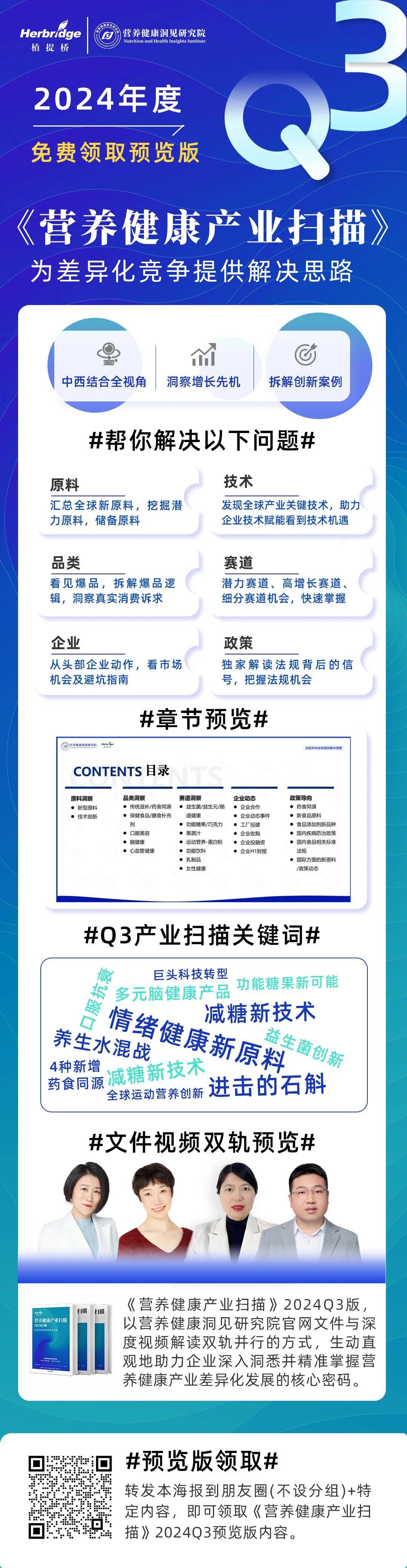 福利:2024Q《营养健康产业扫描》预览版领取(完整版可找植提桥工作人员购买)。