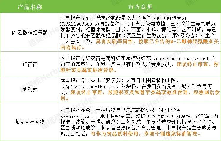 近日,国家卫健委更新了《新食品原料终止审查目录》,有4种物质进入目录,分别是:N-乙酰神经氨酸、燕麦青提取物、红花苗以及罗汉参。