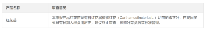 申报过程回顾:红花苗在2024年3月21日被卫健委受理申报,受理编号【卫食新申字(2024)第0005号】。经过不到5个月的时间迎来终止审查,可见审理的速度还是相对较快的。不过按照叶菜类蔬菜标准管理也意味着,红花苗目前还无法进入加工食品开发当中,距离商业化还有一段路要走。