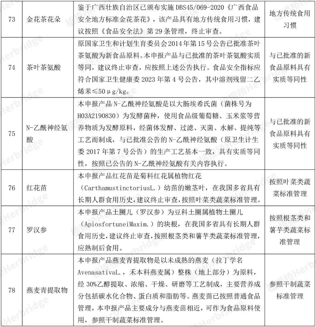 据植提桥统计,截止目前,共有78种申报的新食品原料终止审查,详见下表。