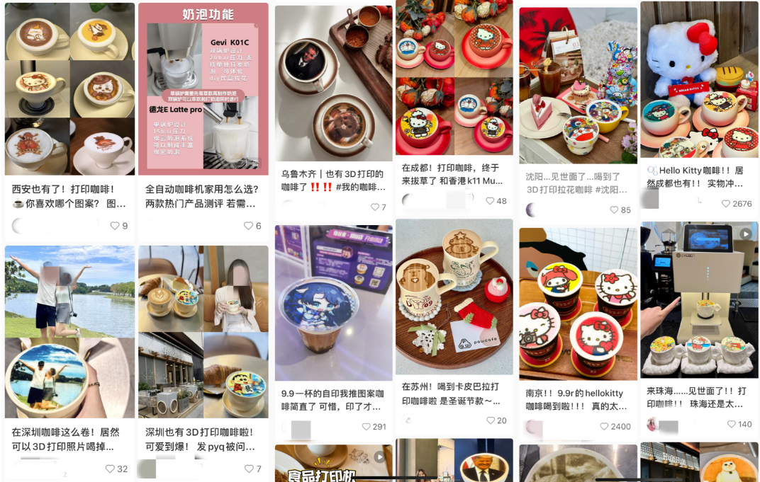 此外,我还发现,杭州、成都、南京,甚至乌鲁木齐、伊宁等城市的很多咖啡店,纷纷引入“打印咖啡”,有的门店增加打印咖啡后,营业额甚至翻倍增长。