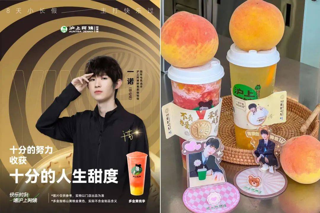 其实,在亚运会开幕前夕(9月22日),沪上阿姨就邀请了一诺担任鲜果茶体验官,这个消息,也一度刷屏了电竞爱好者的朋友圈。