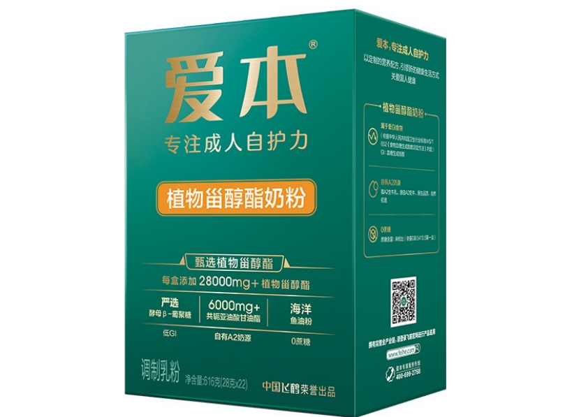 12月19日,飞鹤旗下成人营养品品牌爱本召开新品发布会,并推出了两款全新产品,包括爱本牛初乳奶粉和爱本植物甾醇酯奶粉。据官方介绍,爱本植物甾醇酯奶粉添加酵母β-葡聚糖、共轭亚油酸甘油酯、植物甾醇酯、深海鱼油粉等成分,宣称能够提升成人“自护力”。