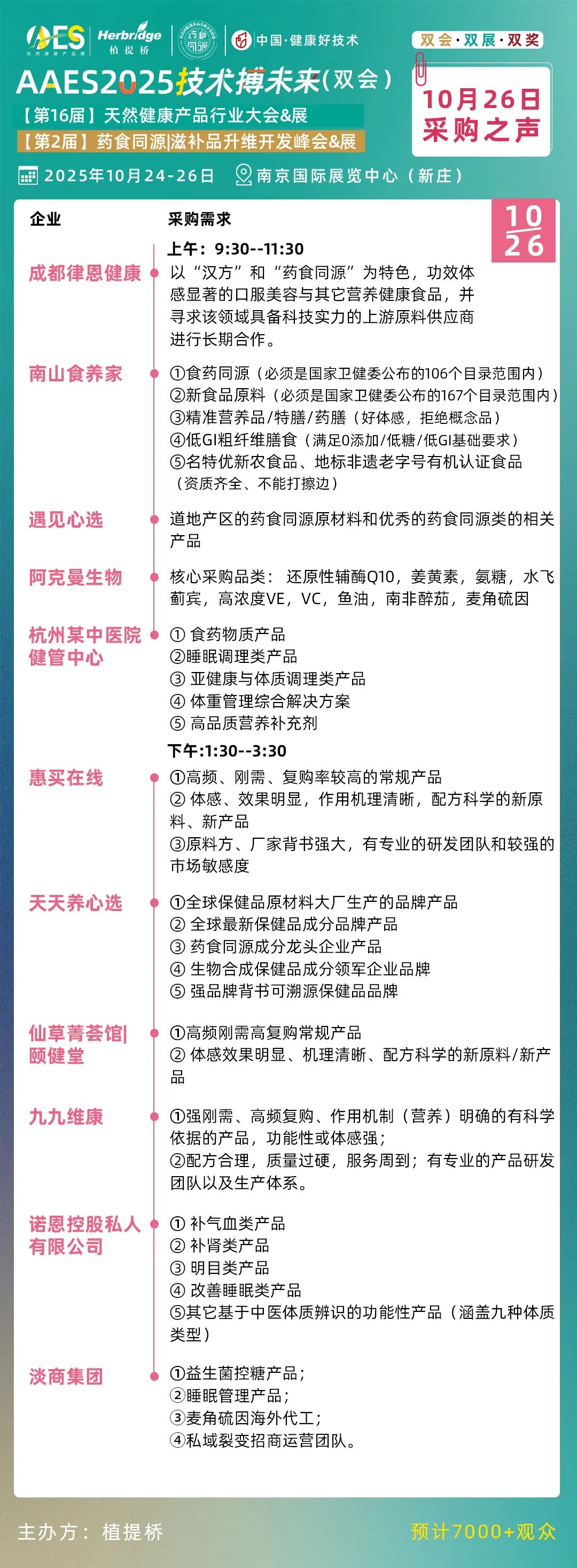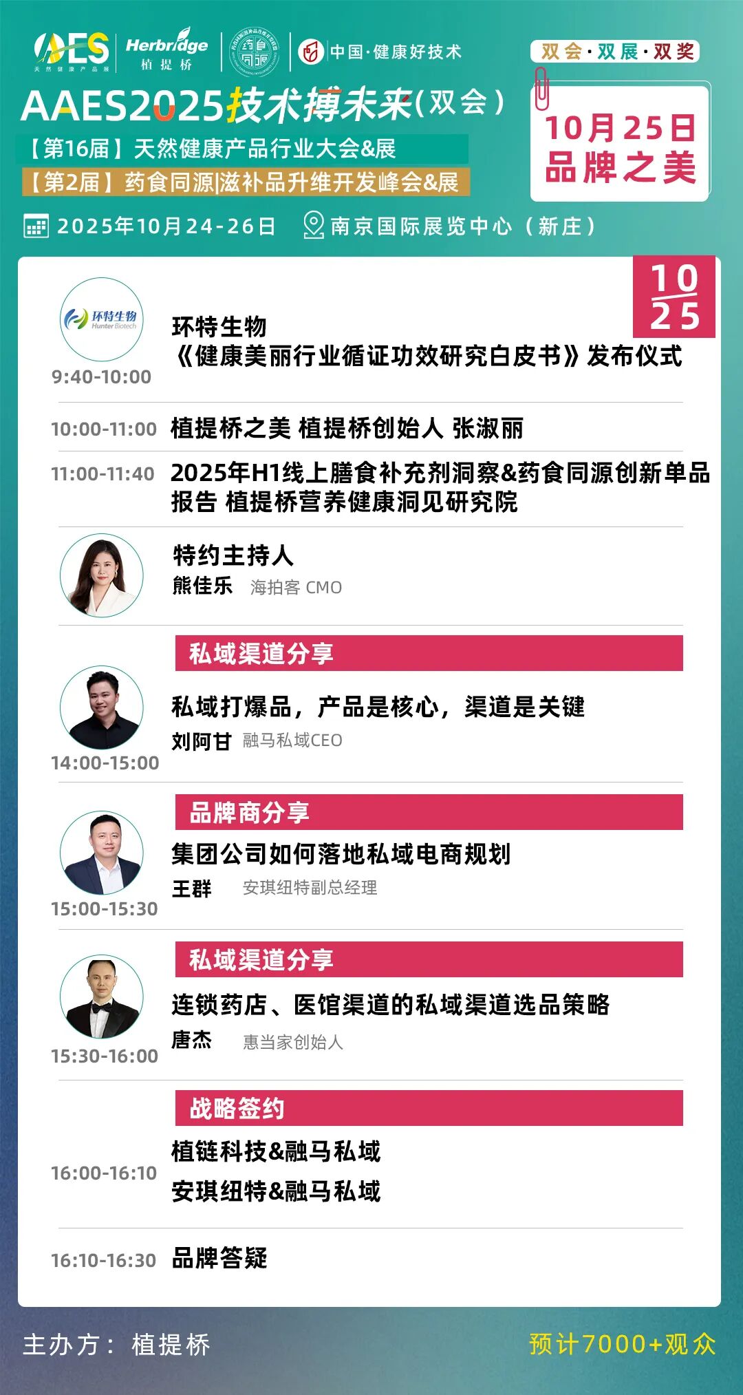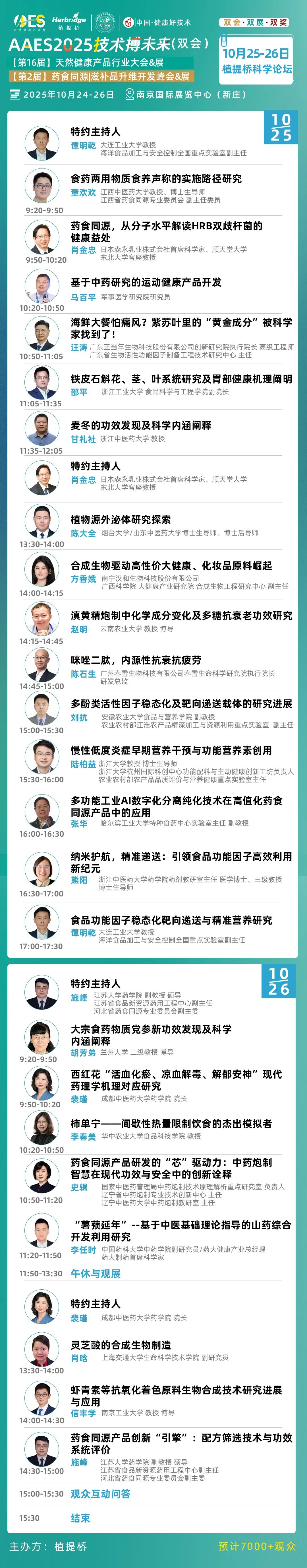 2025年10月24-26日,南京国际展览中心(新庄),植提桥主办的第16届【AAES 天然健康产品展&AAES天然健康产品行业大会】和同期第2届【药食同源|滋补品升维开发峰会】(以下简称 AAES2025),即将启幕!