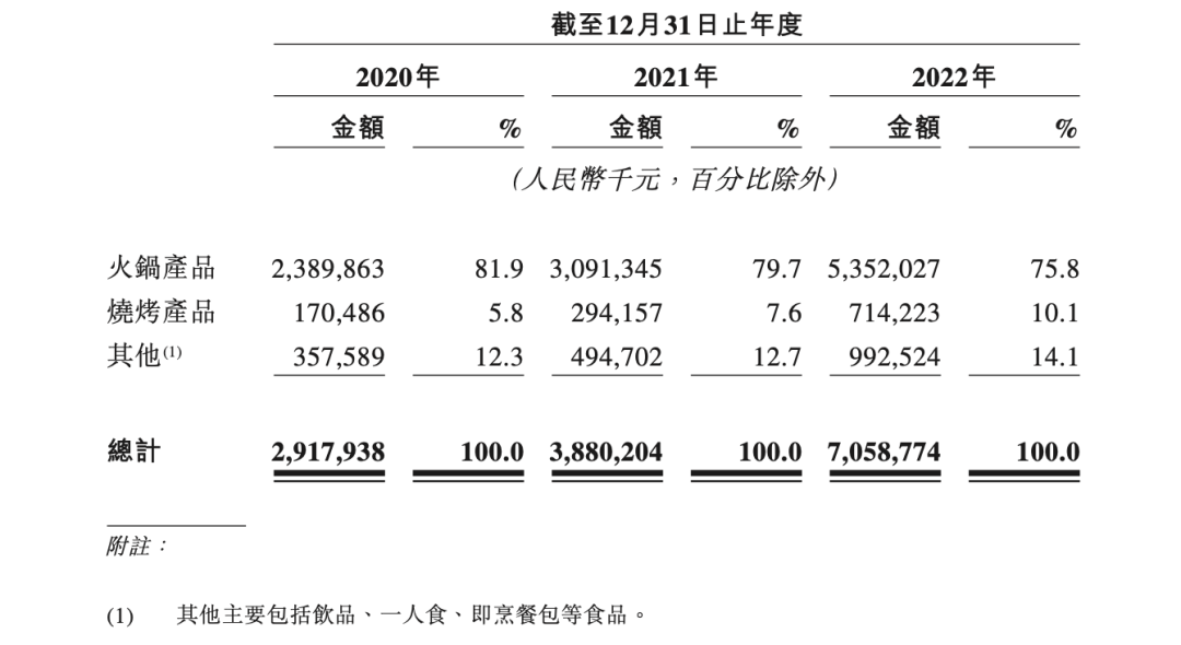 具体来看,锅圈的收入来自火锅产品、烧烤产品和其他产品。截至2022年12月31日,火锅产品包括312个SKU,主要包括肉类、丸类和滑类、火锅底料、锅具等。