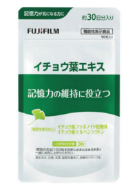 从市场端来看,银杏叶提取物可以单独应用,也跟其它原料复配使用。比如,富士制药推出这款含银杏叶提取物单方的功能性标示食品,主要针对中老年人群,产品剂型为片剂。