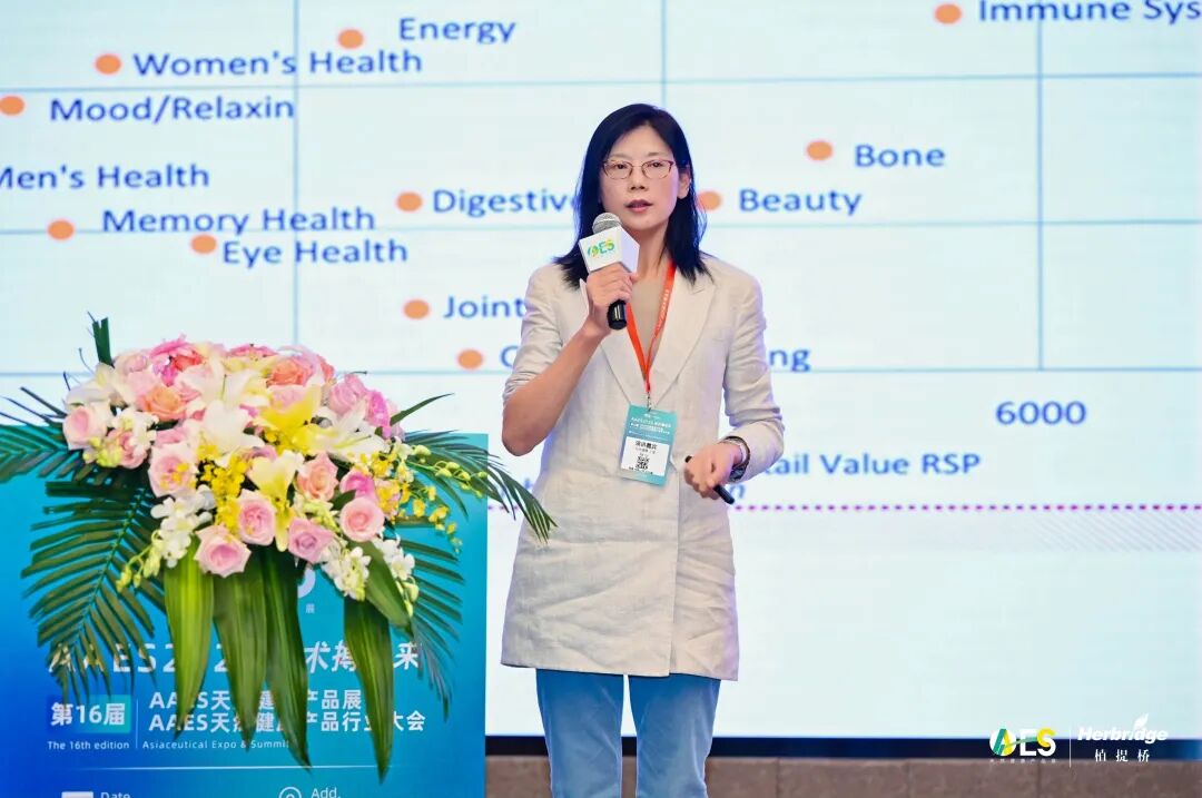 北京宜有科技有限公司、宜有乐品牌创始人王春玲向大家介绍了,基于医学理论下的保健食品开发方式。首先,基于科学理论明确原料的作用机制,包括营养学、分子生物学等。其次,对核心成分进行质量控制管理,通过递送技术提高原料的生物利用度。最后,构建科学金字塔,为产品开发提供数据支撑,真正实现从“营销竞争”到“科技竞争”的产业升级,构建真正的市场竞争壁垒。
