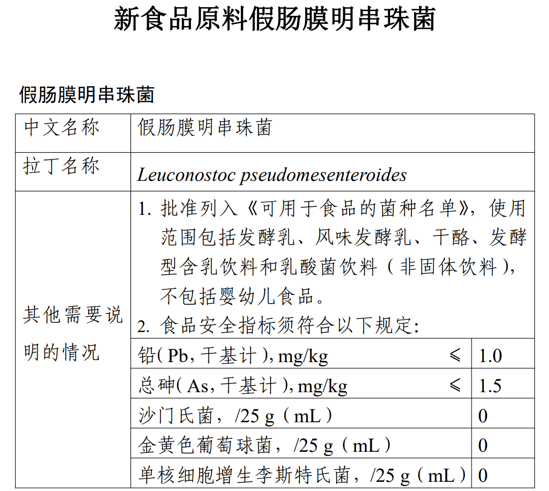 假肠膜明串珠菌是一款进口来源的益生菌类新食品原料。