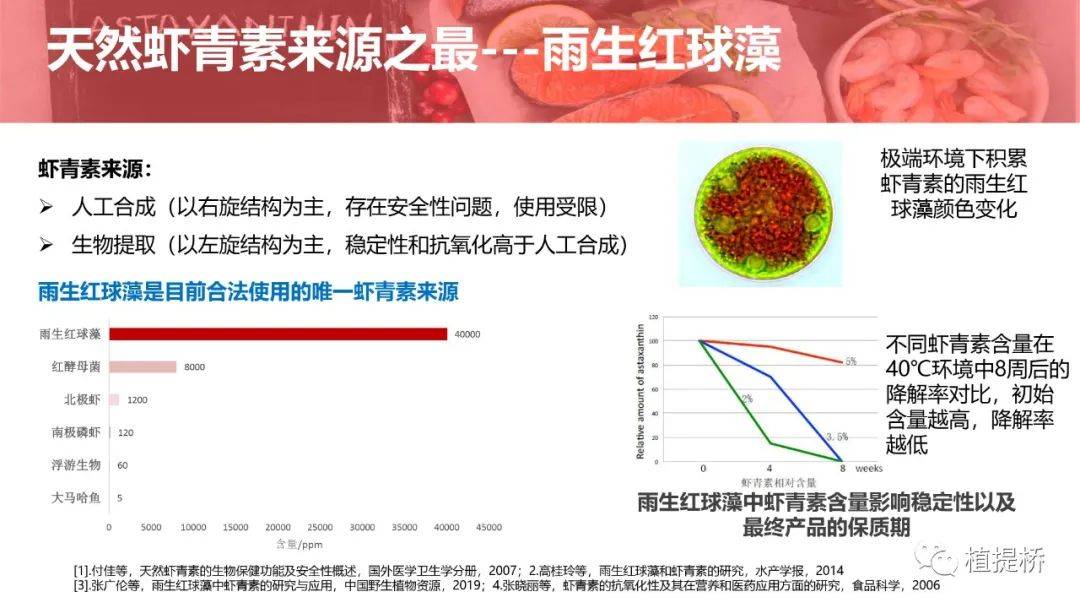 直白来说,单位含量更高的虾青素产品,对消费者来说意味着是更好、更优、营养更佳的选择。天灿®雨生红球藻软胶囊单位含量达100g含虾青素0.8g,含量高,服用便捷,一天一粒即可满足日补充量。