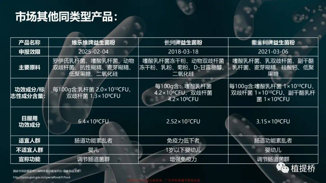 维乐维牌益生菌粉选用专利菌株(中国发明专利:ZL201010226737.7),每袋活菌添加量达96亿、效期内活菌数每袋达3.2亿;并且选择了2种益生元,可更好地辅助益生菌调节肠道菌群。