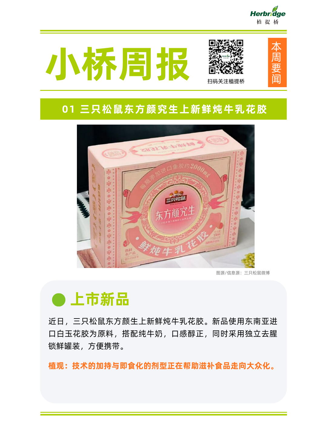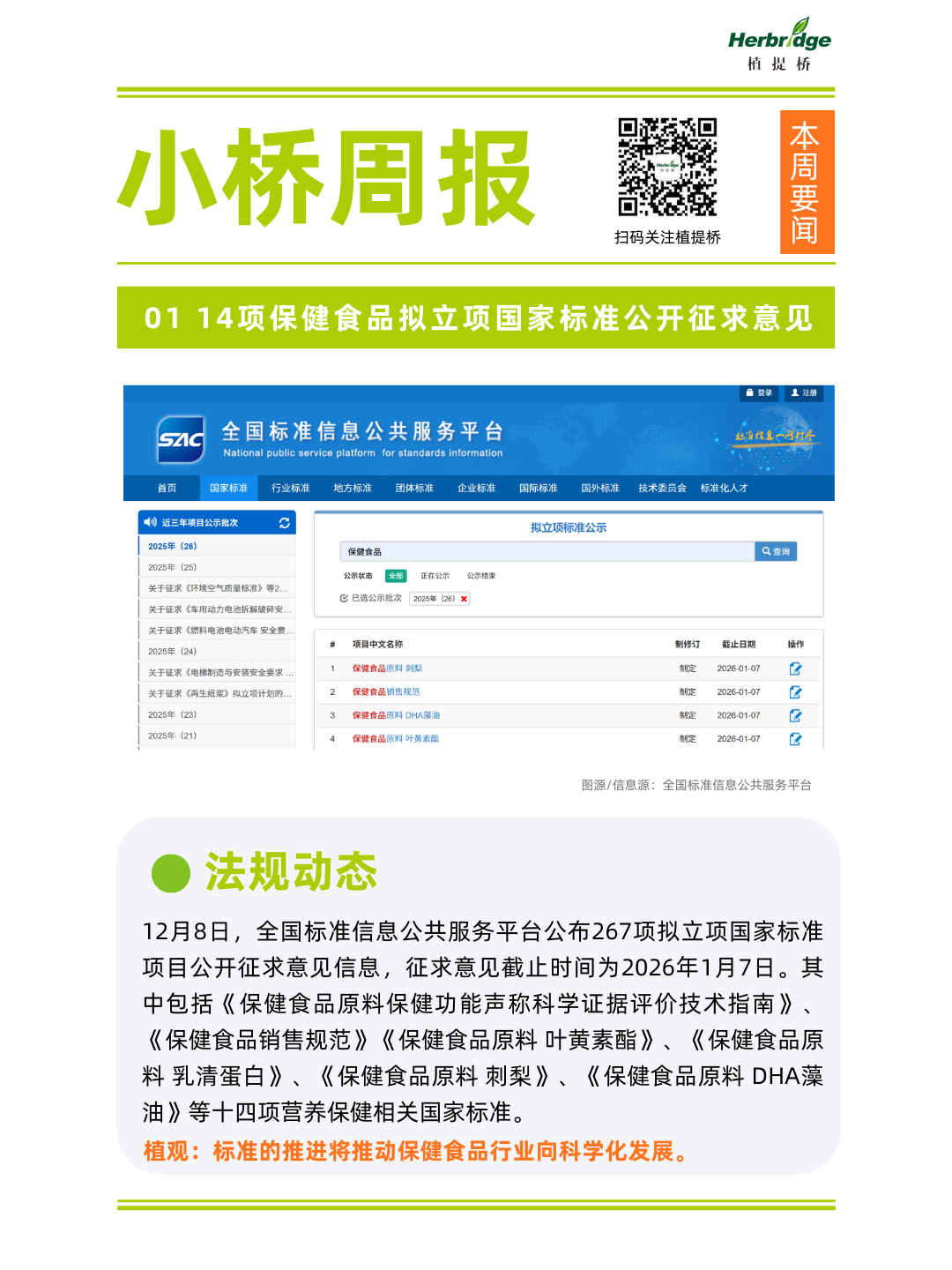 一周要闻|14项保健食品拟立项国家标准征求意见;迈胜、三只松鼠等上新;雀巢、京东健康、香飘飘新动态
