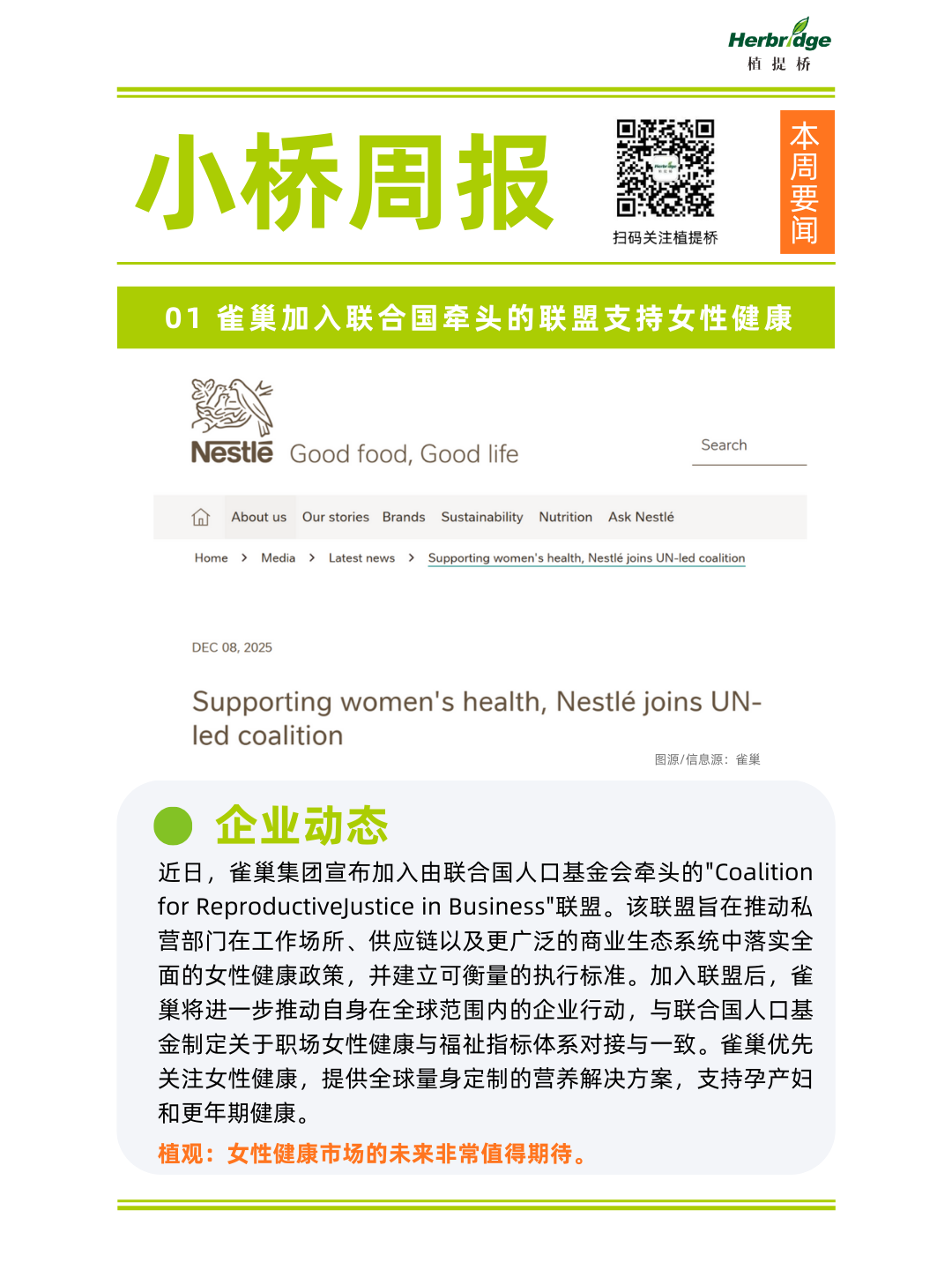 1、雀巢加入联合国牵头的联盟支持女性健康