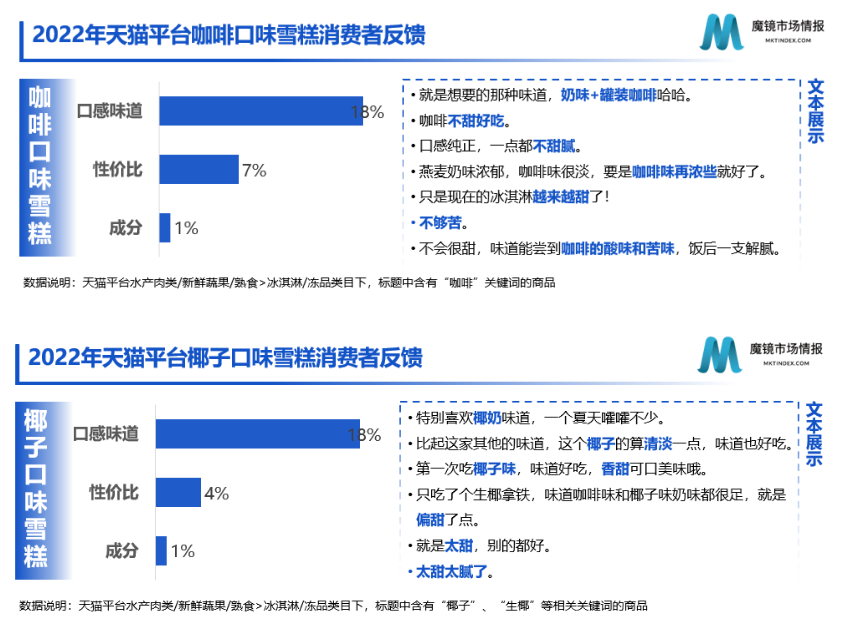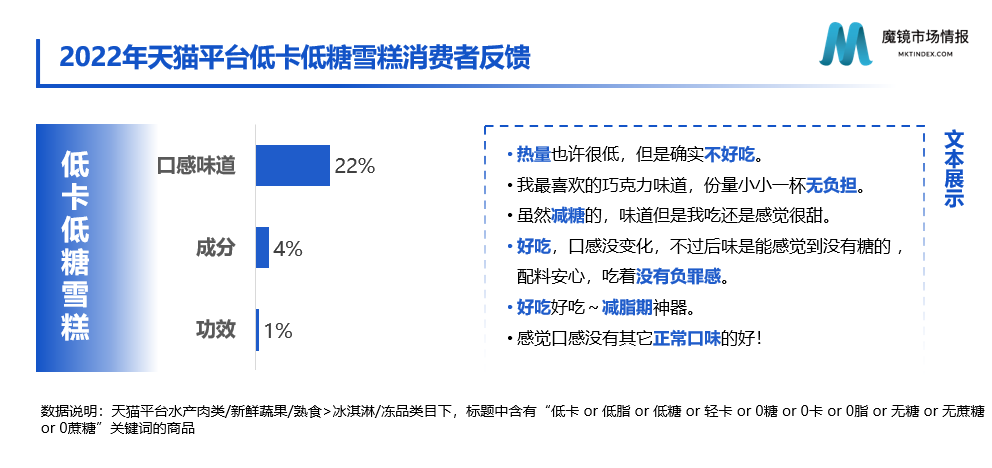从天猫平台的消费者反馈来看,好吃与健康的平衡是该类产品最大的痛点,解馋无负担促使消费者尝新,但口味好吃才能带动复购。而该类雪糕是否好吃,消费者众口难调。