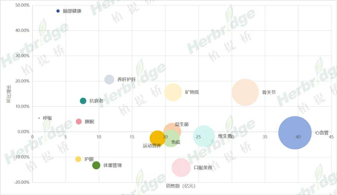 在人口老龄化持续加深、运动人群关节养护意识觉醒、儿童长高需求不断增长的驱动下,骨骼健康市场正在迎来爆发式增长。线上渠道持续两位数增速,销售规模和增速领跑膳食补充剂市场。