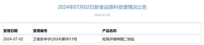 7月2日,对3种新食品原料的申报做了不予行政许可的决定。