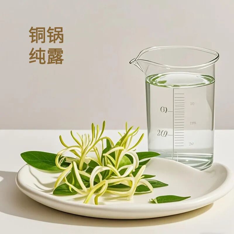 1、金银花纯露:金银花纯露气息清雅有药香,带有鲜花与草本植物的淡淡甜香;口感甘凉,微涩。而且纯露澄清透明,可溶于水,保留了金银花的药用与保健功能,很适合养生膏滋、酒水饮料、药用产品的开发应用。