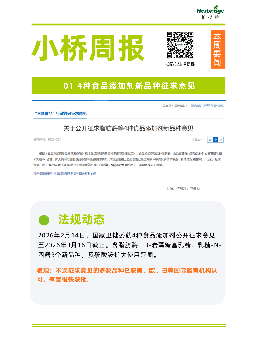 1、4种食品添加剂新品种征求意见