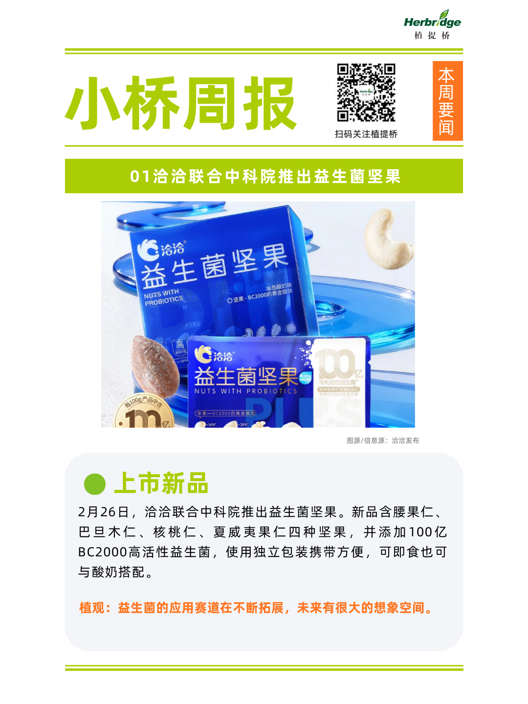 1、洽洽联合中科院推出益生菌坚果