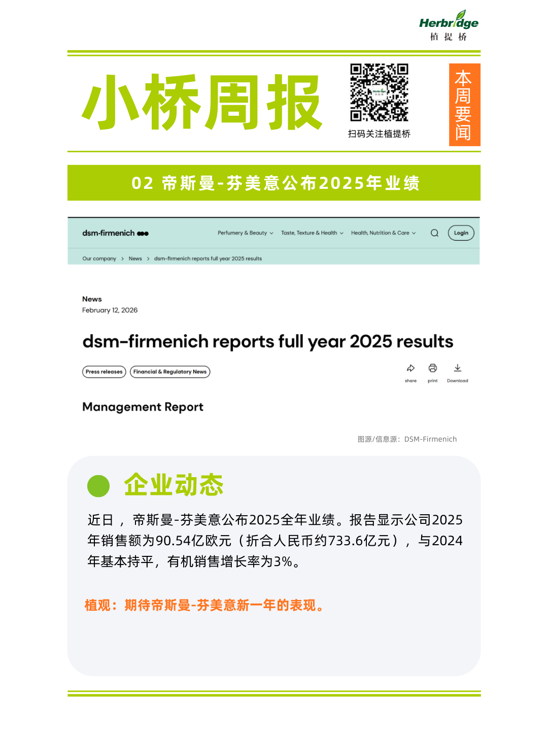 2、帝斯曼-芬美意公布2025年业绩