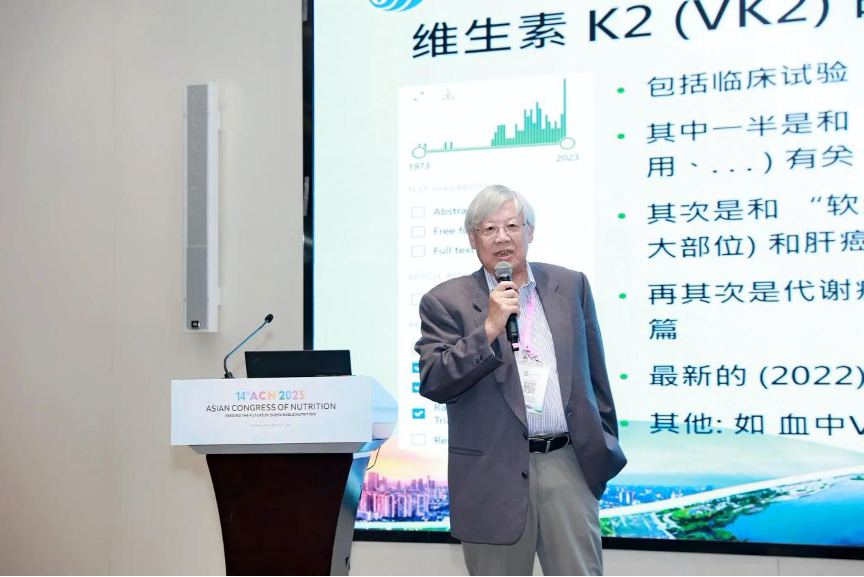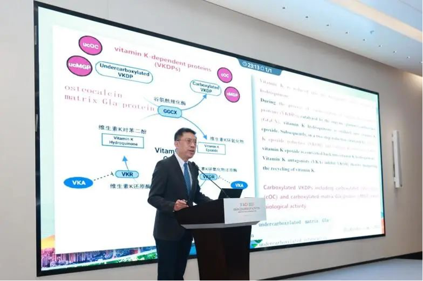 台湾清华大学黎耀基教授带来了《维生素 K2 的临床研究进展》的主题演讲,分享了维生素K2的临床研究新进展。黎耀基教授指出,维生素K2是一个多功能生物分子,可以在维持钙稳态的功能下可确定有维持(改善)骨、肌、血管及其他软组织的生理功能,维生素K2其他的细胞功效包括抗氧化(抗发炎)及改善线粒体功能障碍,会使其在抗癌及抗神经退行性疾病有一定的生理功效。维生素K2在后续的临床研究中仍有宽广的空间。